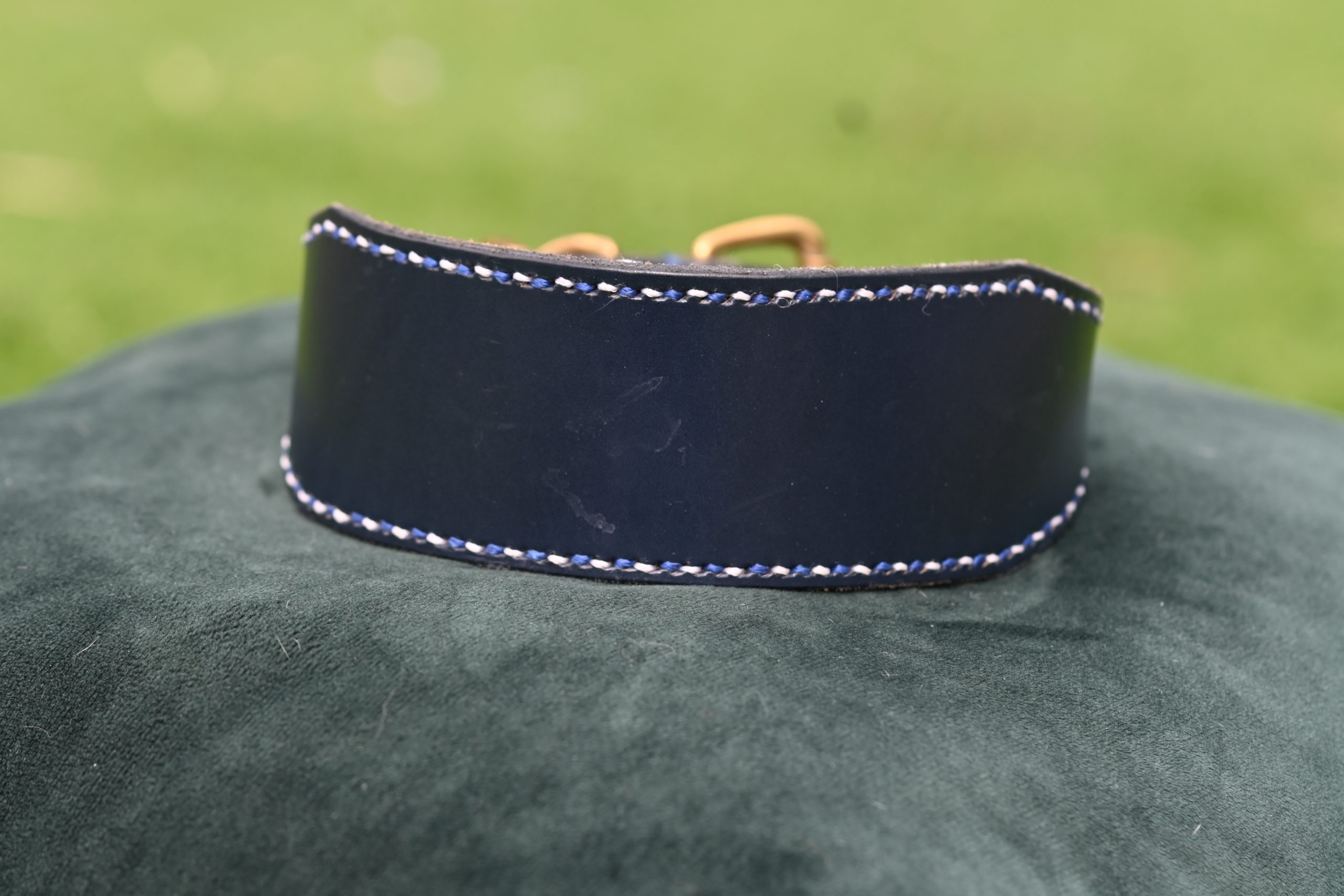This is a unique, one-of-a-kind leather hound collar, sourced as part of a stock liquidation collection. This piece was lovingly handmade and hand-stitched by a skilled leathersmith in the UK, it combines craftsmanship with timeless style.